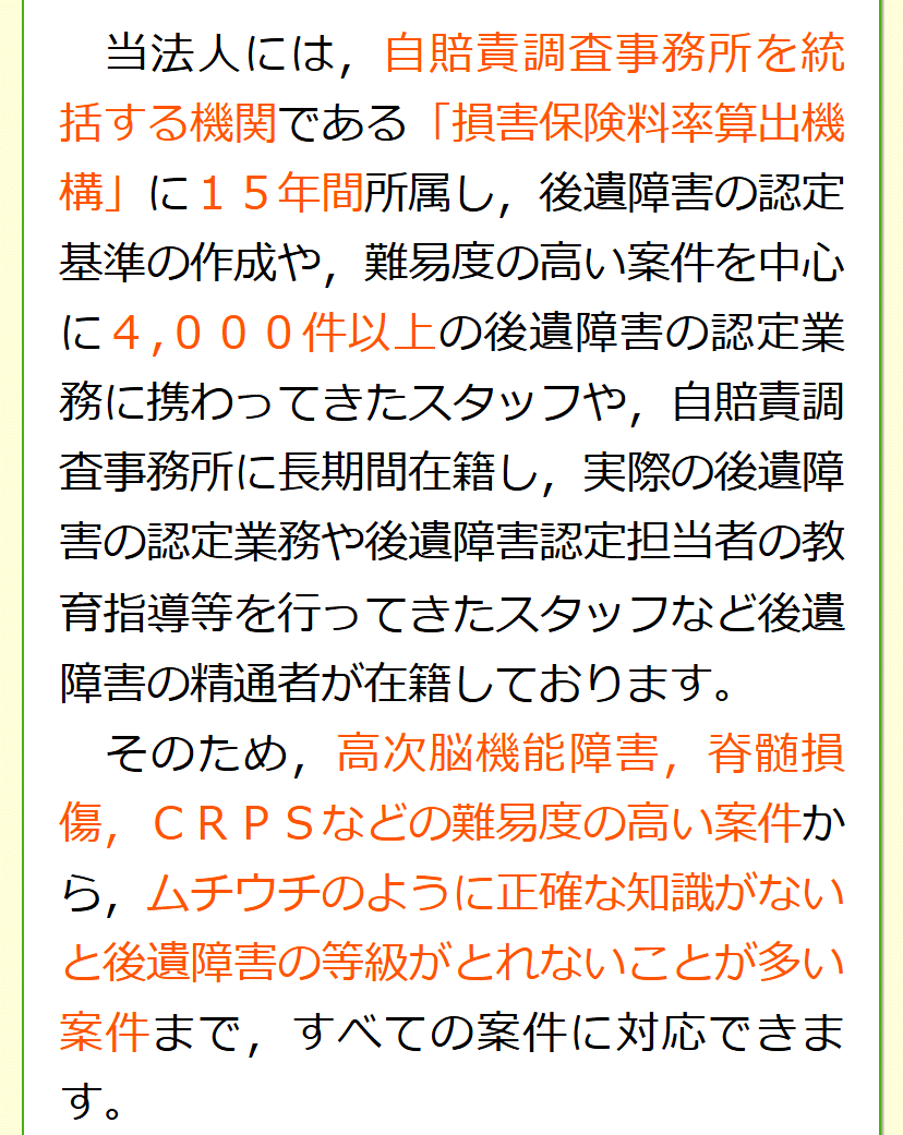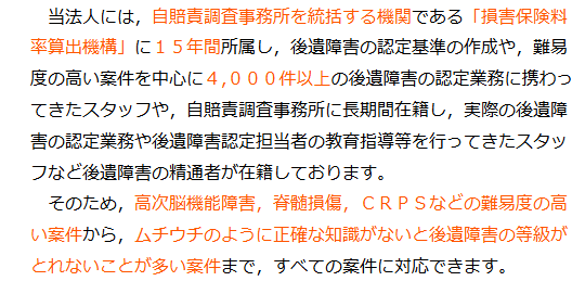 当法人には,後遺障害の等級を認定する機関に勤めていた経験を有するものが複数名在籍しております。